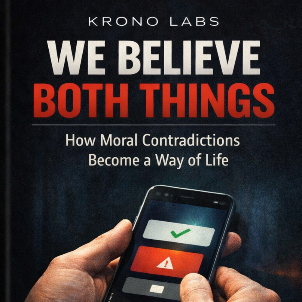 We Believe Both Things explores how moral contradictions are normalized, shared, and protected, allowing people and institutions to maintain self-image while participating in outcomes they claim to oppose.